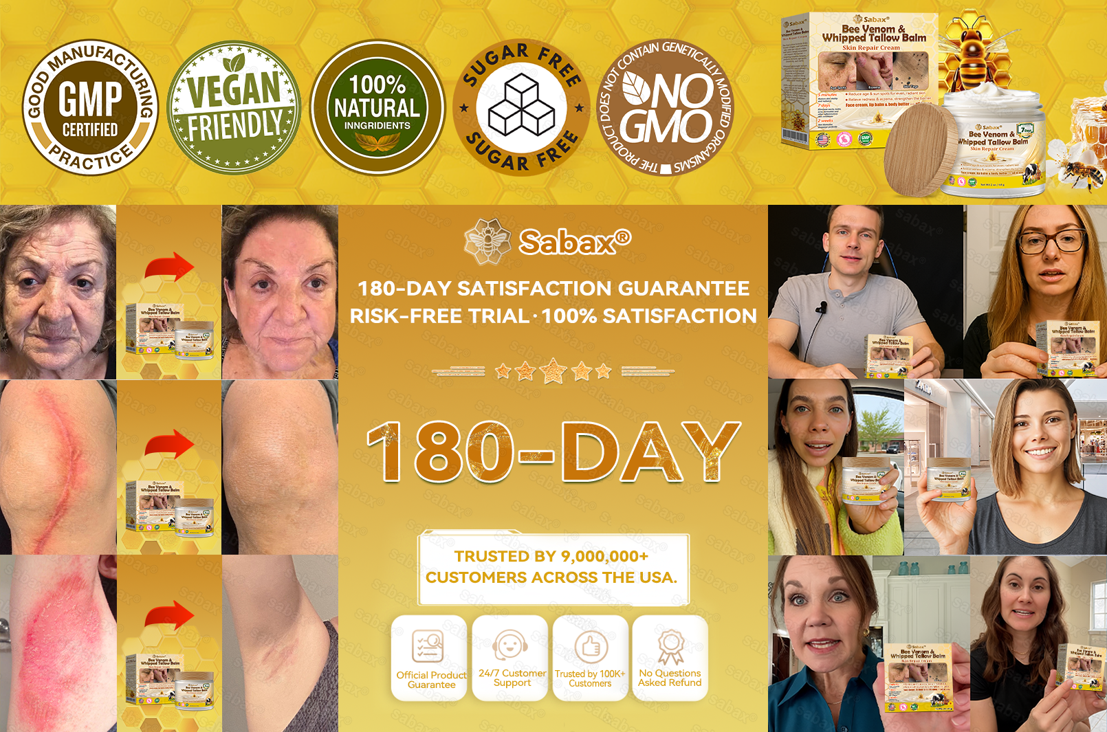 Sabax® Bee Venom & Whipped Tallow Skin Repair Cream was created by a team of 30+ dermatology and regenerative medicine experts after over three years of research and clinical validation. Powered by Bee Venom Peptides and nutrient-rich Whipped Tallow Balm, the formula is FDA-registered for safety and efficacy, and has been clinically tested by dermatologists worldwide—showing remarkable results in reducing wrinkles, age spots, purpura, eczema, acne, warts, scars, psoriasis, and skin tags.